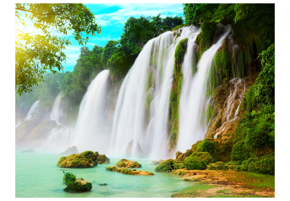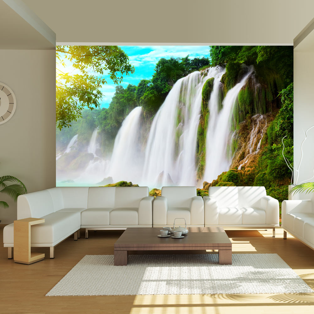 Widerstandsfähige, wasserabweisende und kratzfeste Vliestapete „Detian – Wasserfall (China)“ zum Anbringen an die Wand. Fototapete „Detian – Wasserfall (China)“ mit dem inspirierenden Motiv wird zum effektiven Zimmerschmuck jeden Raumes. Vliestapeten werden mittels Kleister an der Wand befestigt. Man kann sie in jedem Raum montieren sogar im Bad oder in der Küche. Vliestapete, halb-matte Beschichtung. 100% Vlies deckt kleine Unebenheiten der Wand ab. Sie schafft eine wärmedämmendene Isolierschicht und erlaubt den Wänden zu atmen. Wasserfester Druck ist sehr beständig. Hochqualitativer Druck